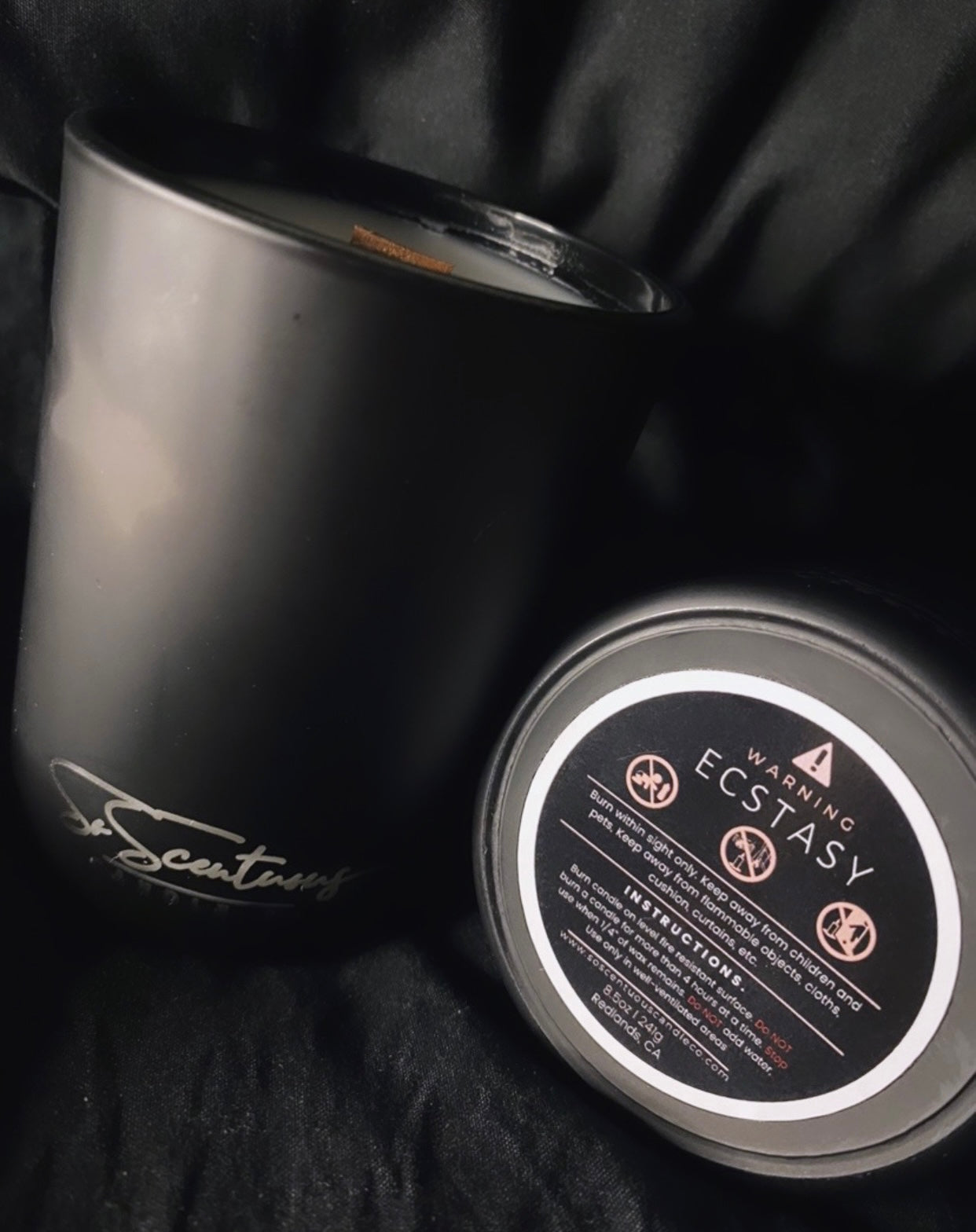 Here at SoScentuous Candle Co, all of our candles are artisan crafted using a clean and luxurious Coconut Apricot wax blend. A SoScentuous candle is precisely hand poured into our signature sleek, sexy and engraved matte black vessel. While you encompass yourself within an overwhelming scentual experience, enjoy the soothing crackle of a sustainable wooden wick.